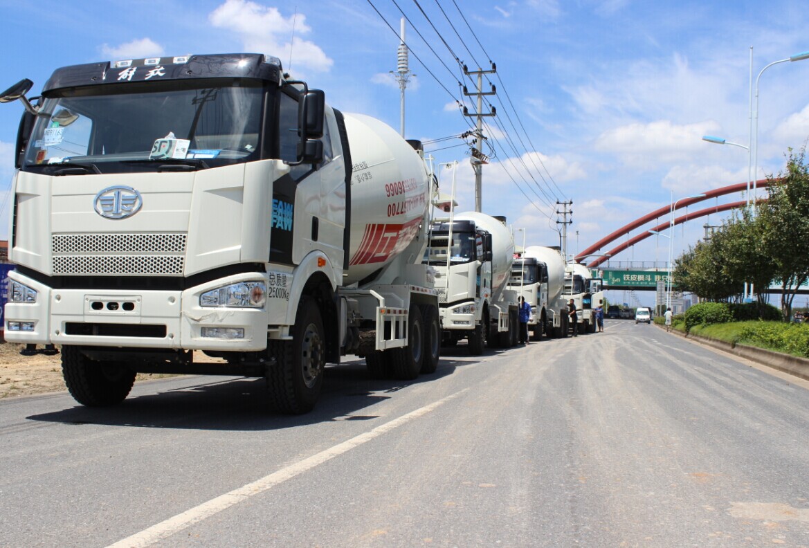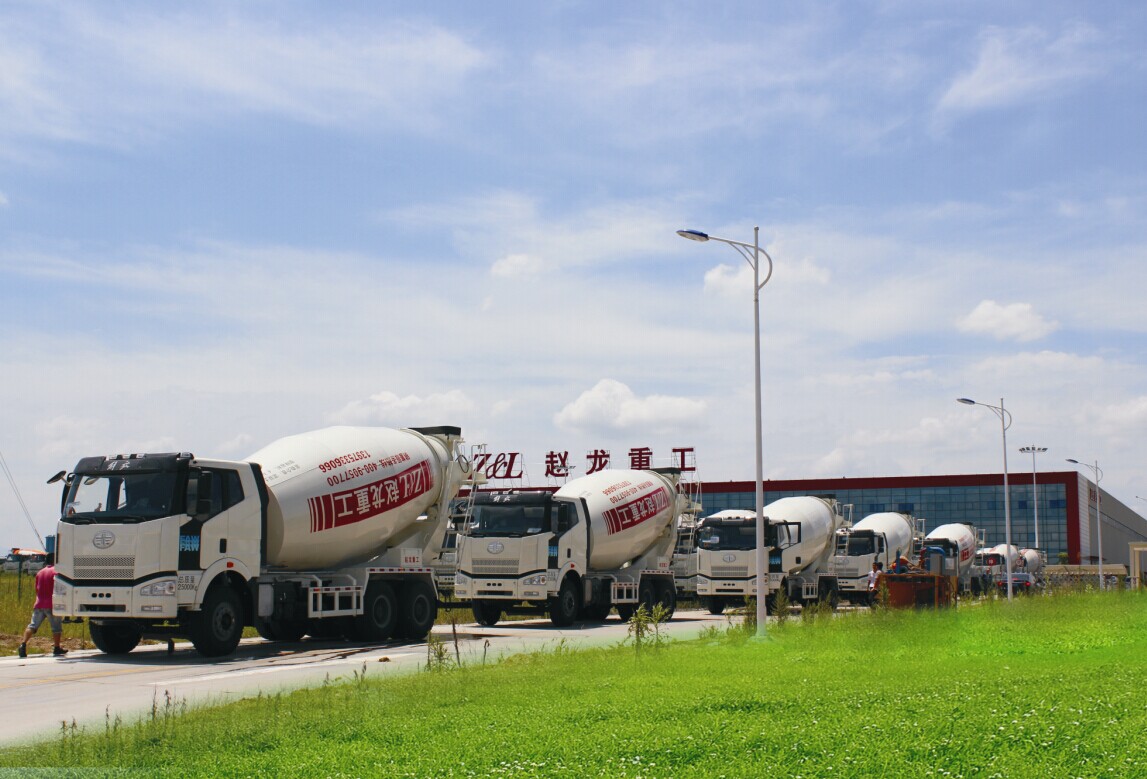 2014年7月17日下午,10臺嶄新的攪拌車齊聚趙龍重工義烏生產(chǎn)基地廠區(qū)大門整裝待發(fā),即將發(fā)往湖南長沙市西城偉業(yè)混凝土有限公司。